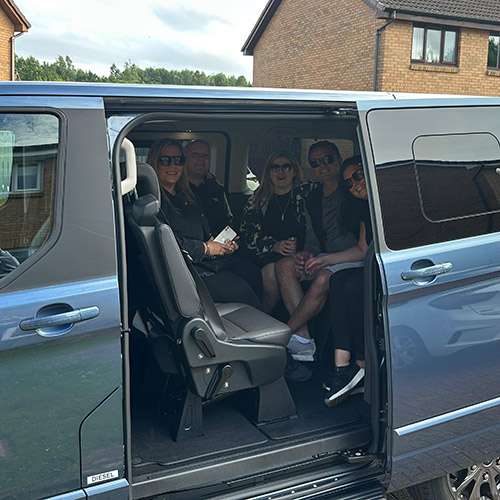 Whether it’s a birthday bash, bar-hopping evening or a group night out in the city, our nights out minibus hire in Glasgow ensures you travel safely and together from door to door. Our 9-seat minibuses boast spacious interiors, USB charging points and tinted windows for privacy.
